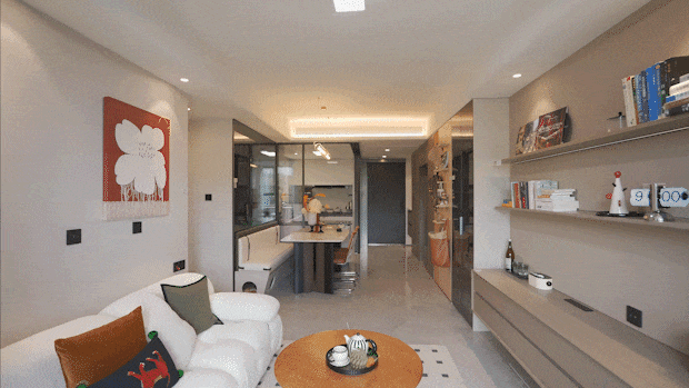 从卧衣帽间设想的收纳也很人道化,从卧套房设想私密性舒服度兼具;正在揽境客堂坐下来喝杯咖啡,到小区地方从水景,起落幕布秒变家庭影院?